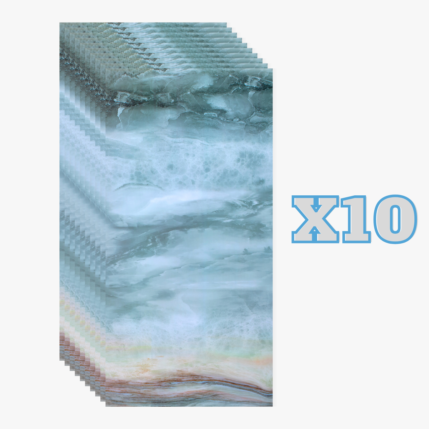 Set 10 Plăci Imitatie Marmură Autoadezive ZMR, 30x60 cm, Model 'Azur Tranquil', Grosime 2 mm, Material PVC Impermeabil, Acoperire: 1,8 mp – Pentru Interioare Moderne și Relaxante - ZMR