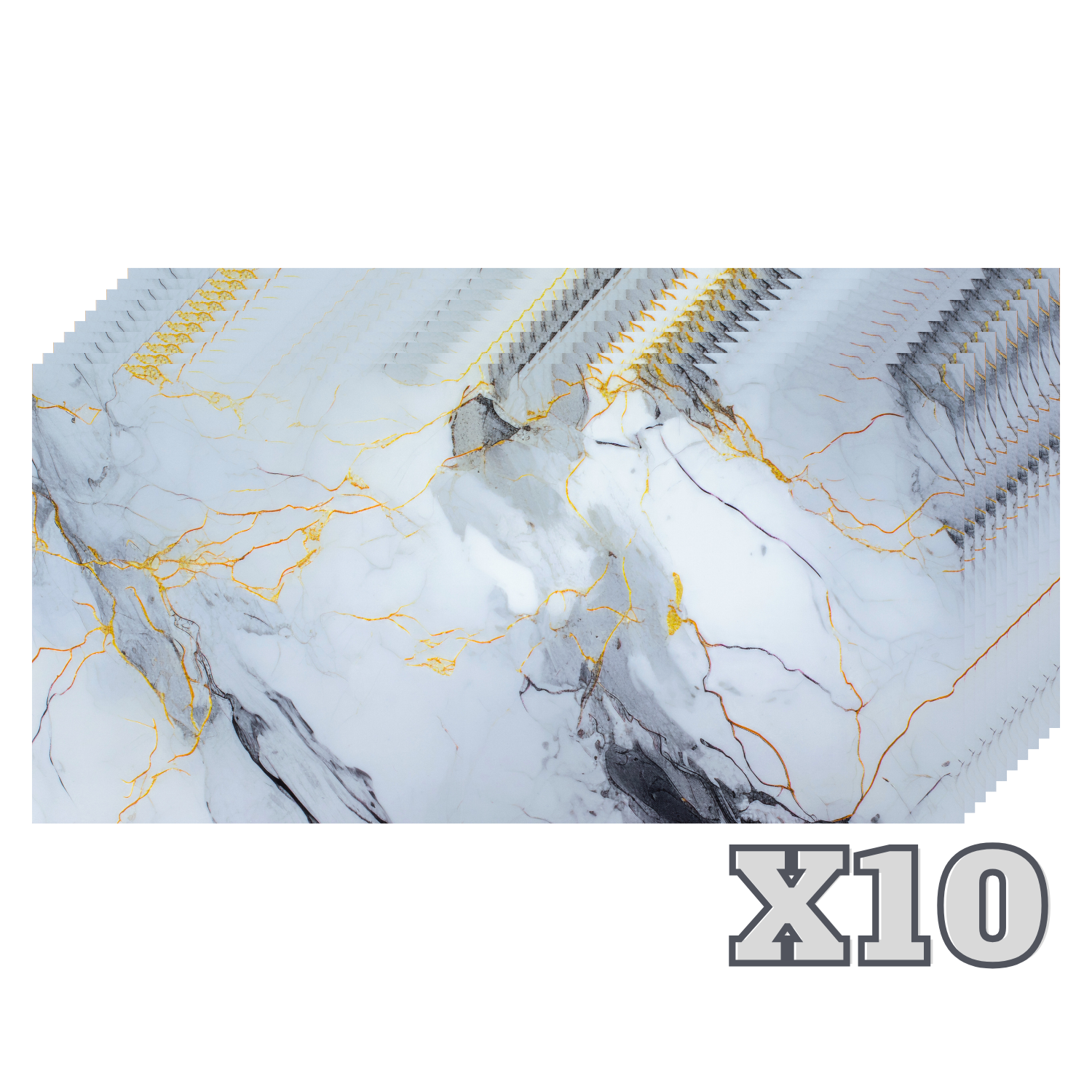 Set 10 Placi Imitatie Marmura Autoadezive ZMR, 30x60 cm, Model 'Crapaturi Aurii', Grosime 2 mm, Material PVC Impermeabil, Acoperire: 1, 8 mp – Design Luxos cu Detalii Aurii