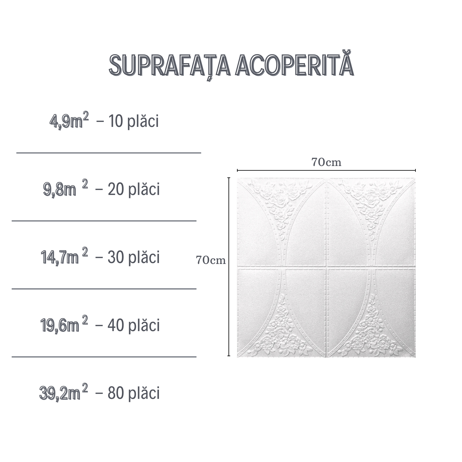 • Dimensiuni panou: 70x77 cm (0.539 m² per bucată)