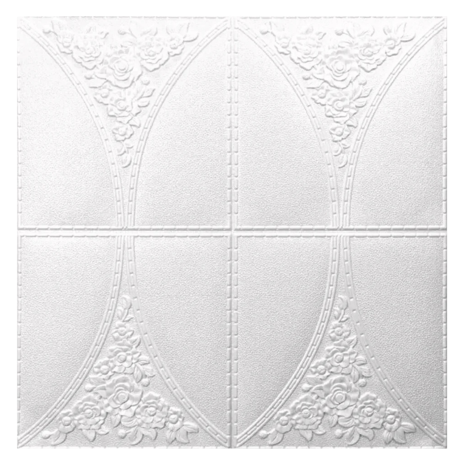 Set 10 Panouri Decorative Autoadezive 3D ZMR, 70x70 cm, Model 'Floral Arc Alb', Grosime 3 mm, Material PVC Rezistent la Apa, Acoperire: 4, 9 mp – Design Floral Clasic pentru Spatii Distinse
